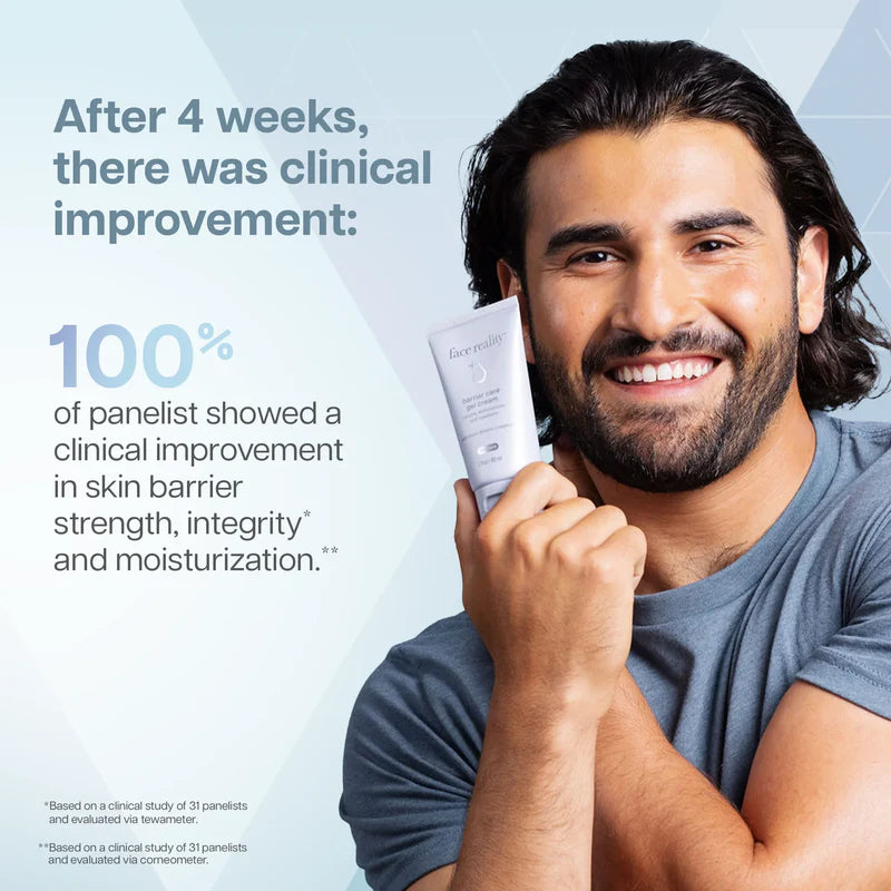 The smarter way to stronger skin—Barrier Care Gel Cream uses skin-mimicking technology to restore what's been lost. Powered by the Multi-Restore Complex™ this formula delivers your barrier's own essential components—ceramides, squalane, and essential lipids—in ratios your skin instantly recognizes. A strong foundation keeps skin balanced and supports your journey to clearer skin. This lightweight gel cream supports any skincare routine, helping the barrier recovery process while locking in moisture to build skin's resilience for long term health.